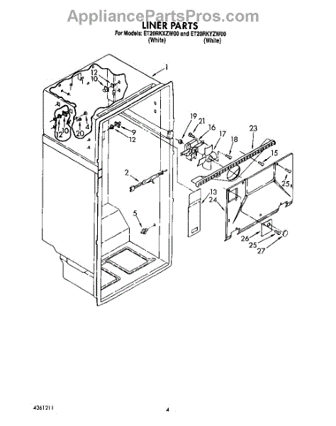 Parts for Whirlpool ET20RKYZW00: 03 - Liner Parts