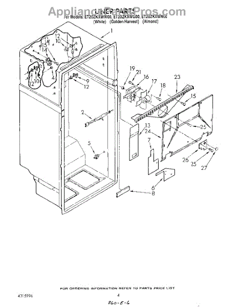 Parts for Whirlpool ET20ZKXWG00: 03 - Liner Parts