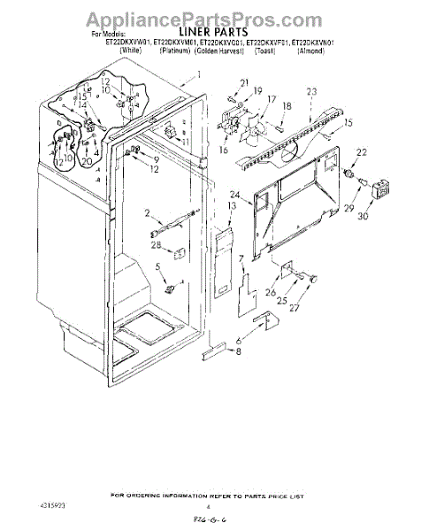 Parts for Whirlpool ET22DKXVG01: 03 - Liner Parts