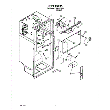 This factory screw secures appliance components to their mounting points. Replace missing, worn, or stripped hardware to restore a tight fit, proper alignment, and quieter operation across the affected assembly.