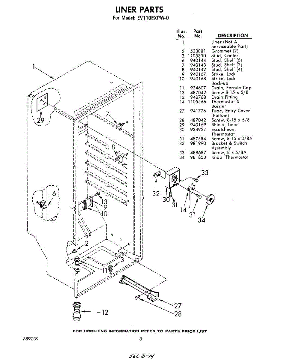 Parts for Whirlpool EV110EXPW0: 08 - Liner Parts