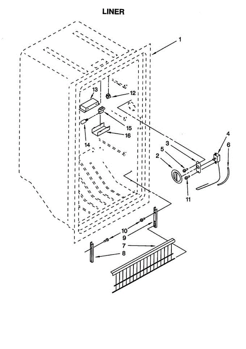 Interior support plate for freezers and refrigerators. Mounts inside the cabinet to hold shelving or components. Replace if cracked, broken, or missing.