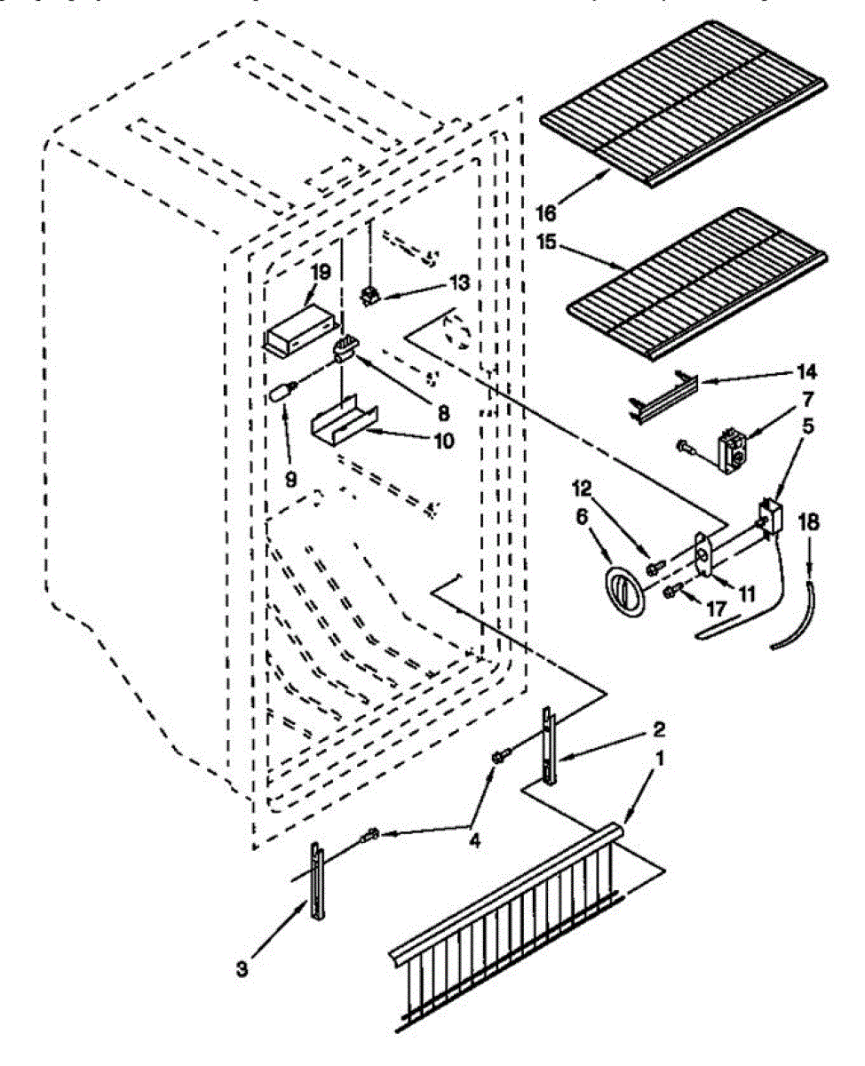 Interior support plate for freezers and refrigerators. Mounts inside the cabinet to hold shelving or components. Replace if cracked, broken, or missing.