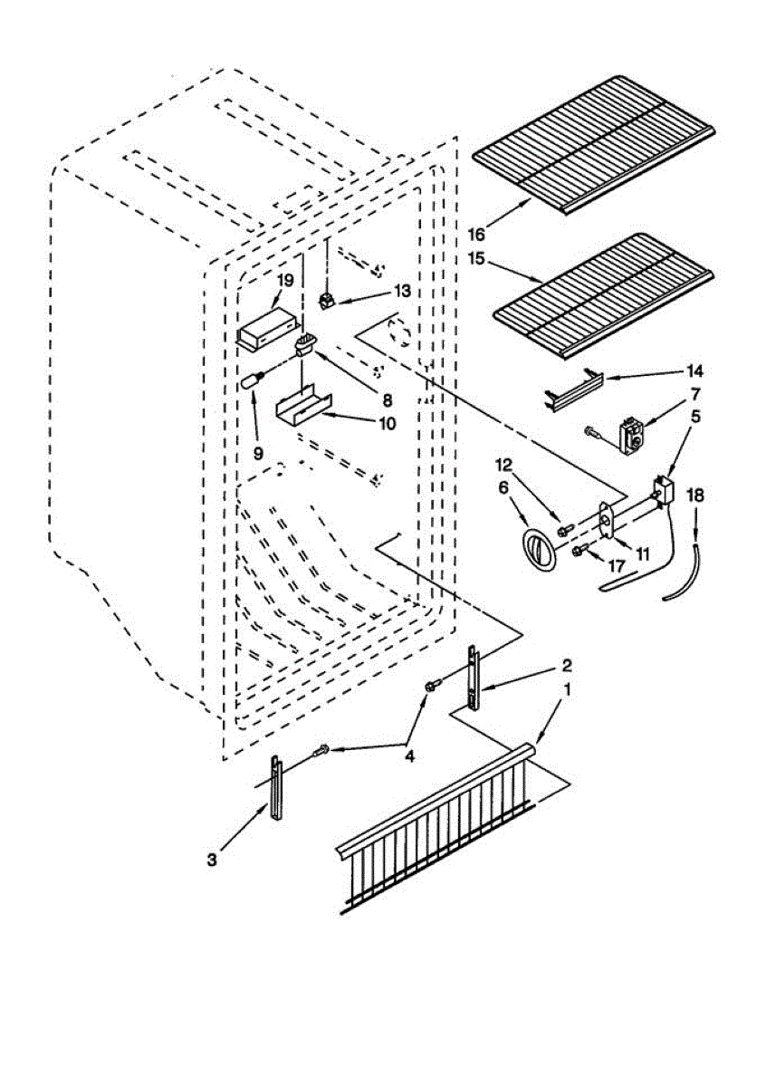 Interior support plate for freezers and refrigerators. Mounts inside the cabinet to hold shelving or components. Replace if cracked, broken, or missing.