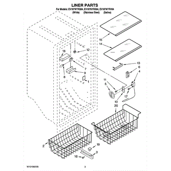 Left-side basket rail for freezers. Replaces cracked, broken, or missing slide rails. Installs on the freezer wall to support wire baskets.