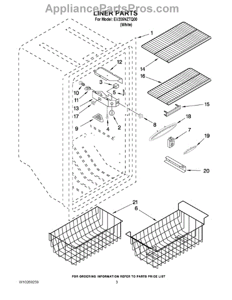 Parts for Whirlpool EV205NZTQ00: 02 - Liner Parts