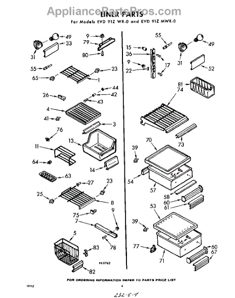 Parts for Whirlpool EVD91ZMWR0: 04 - Liner Parts
