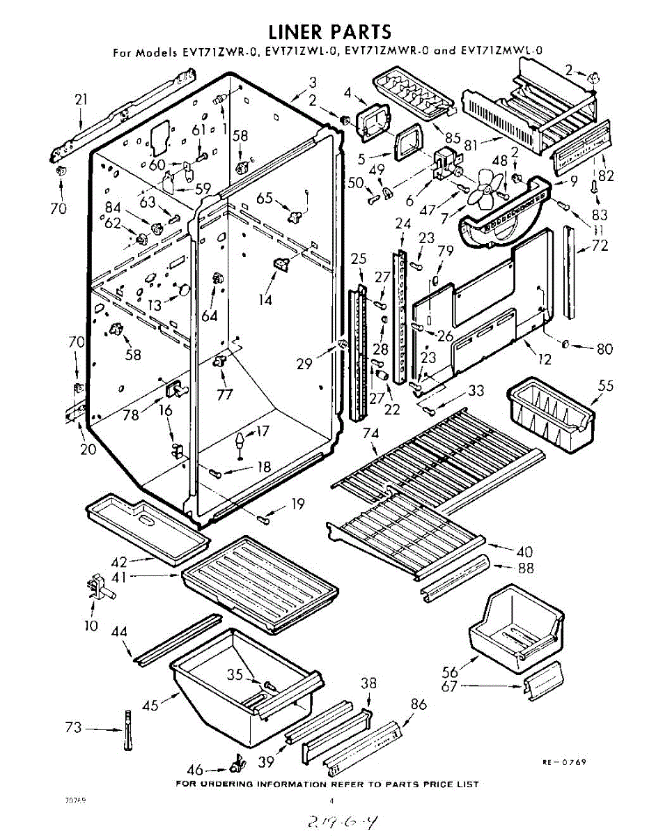 Parts for Whirlpool EVT71ZMWR0: 04 - Liner Parts