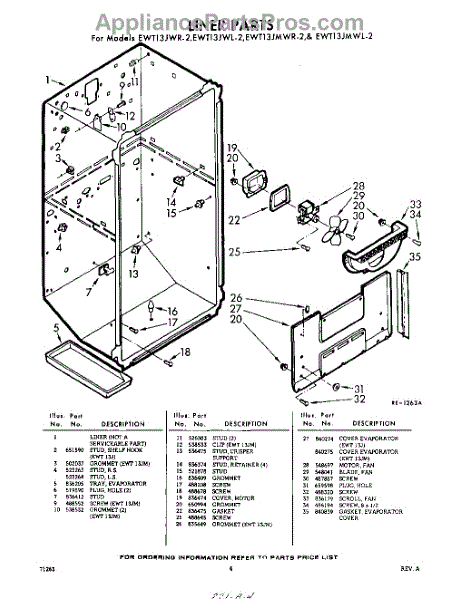 Parts for Whirlpool EWT13JMWR2: 04 - Liner Parts