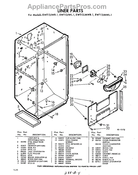 Parts for Whirlpool EWT13JWR1: 04 - Liner Parts