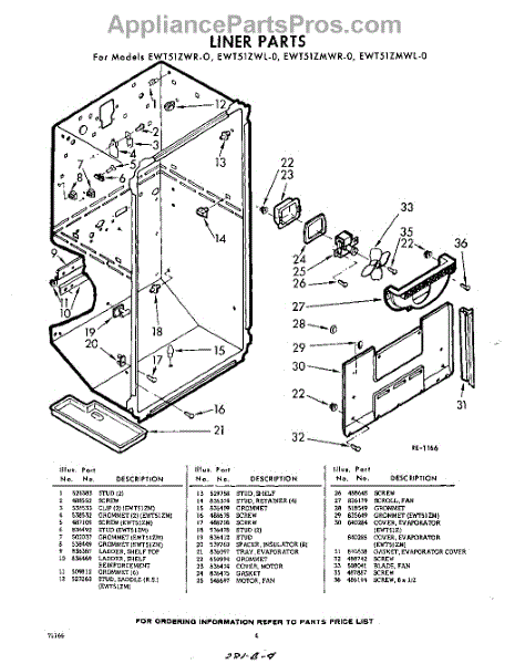 Parts for Whirlpool EWT51ZMWR0: 04 - Liner Parts