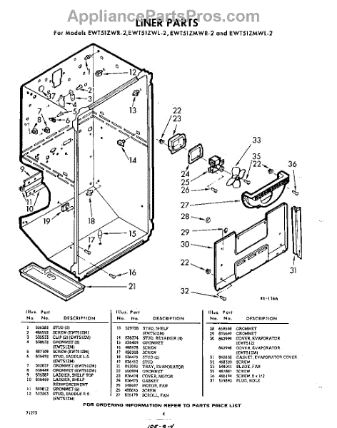 Parts for Whirlpool EWT51ZMWR2: 04 - Liner Parts