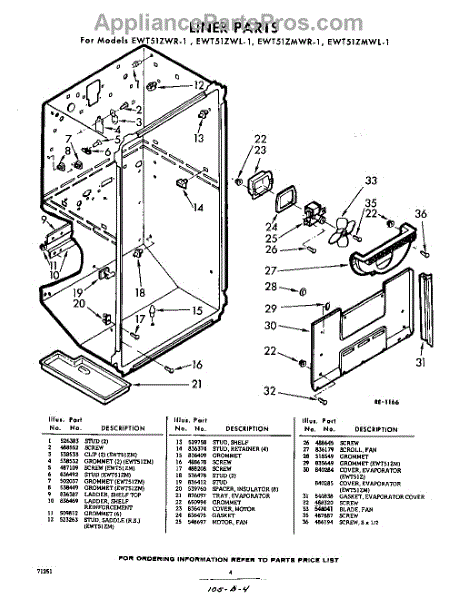 Parts for Whirlpool EWT51ZWR1: 04 - Liner Parts