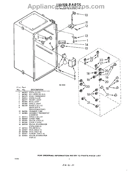 Parts for Whirlpool EXL08CTW0: 02 - Liner Parts