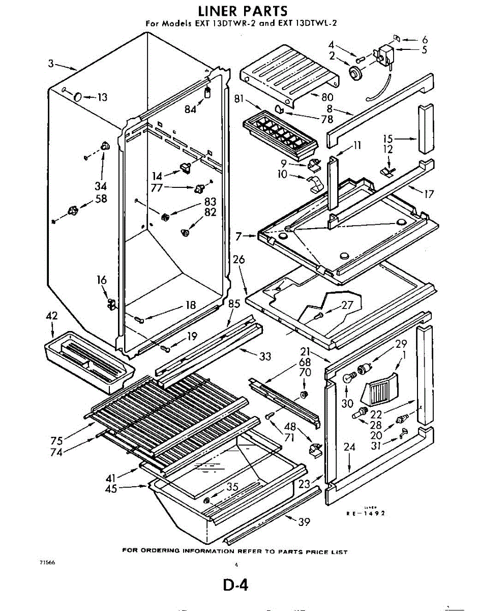 Parts for Whirlpool EXT13DTWR2: 04 - Liner Parts