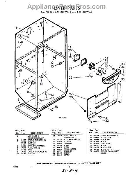 Parts for Whirlpool EXT13JTWR1: 04 - Liner Parts