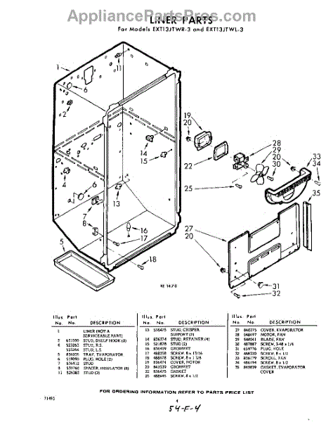 Parts for Whirlpool EXT13JTWR3: 04 - Liner Parts