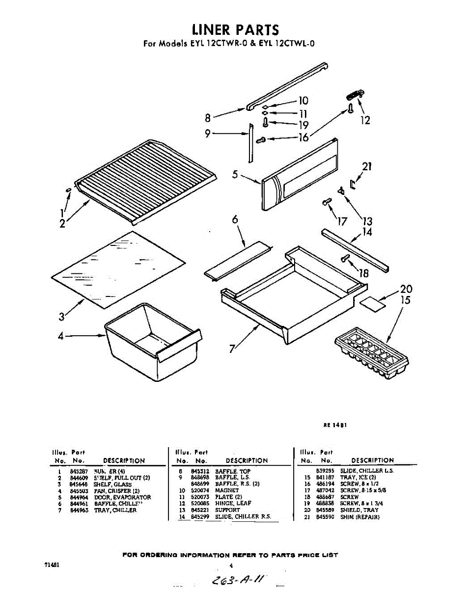 Parts for Whirlpool EYL12CTWR0: 04 - Liner Parts