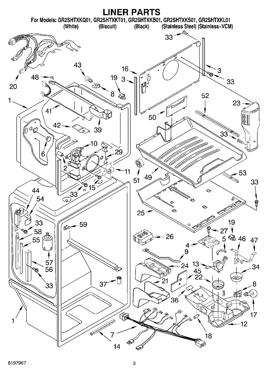 Parts for Whirlpool GR2SHTXKB01: 02 - Liner Parts