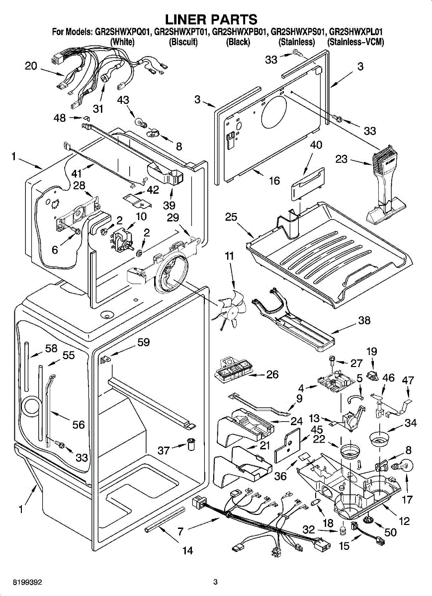 Parts for Whirlpool GR2SHWXPS01: 02 - Liner Parts