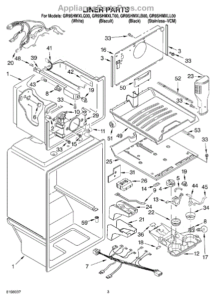 Parts for Whirlpool GR9SHMXLL00: 02 - Liner Parts