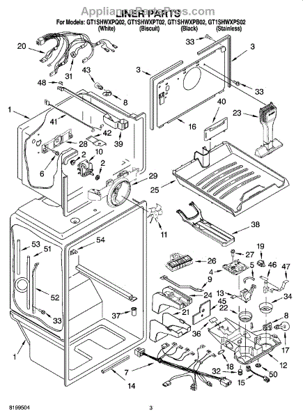 Parts for Whirlpool GT1SHWXPB02: 02 - Liner Parts