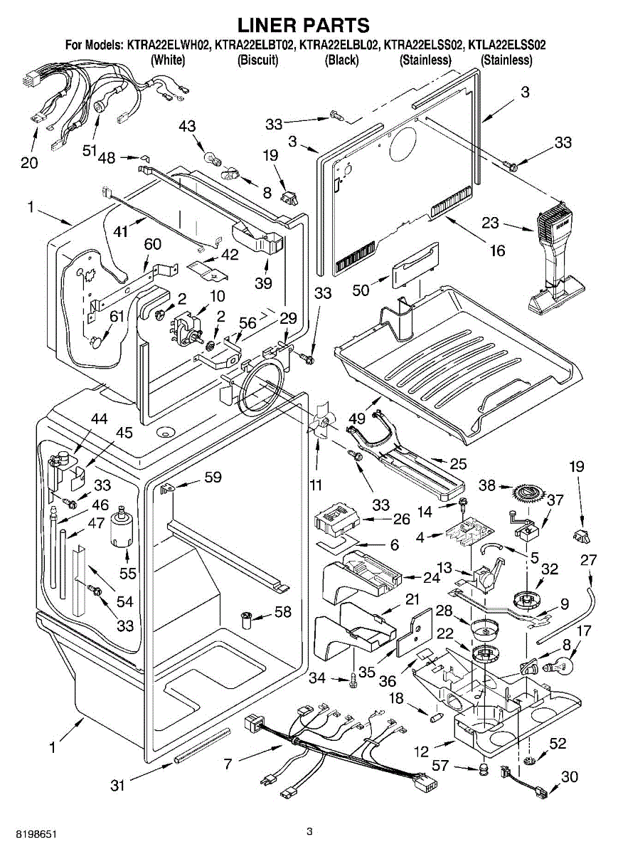 Parts for Kitchenaid KTRA22ELBL02: 02 - Liner Parts