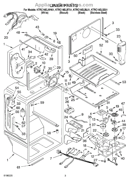 Parts for Kitchenaid KTRC19ELWH01: 02 - Liner Parts
