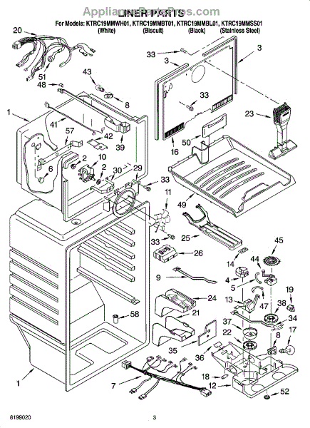 Parts for Kitchenaid KTRC19MMSS01: 02 - Liner Parts