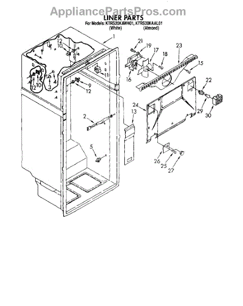 Parts for Kitchenaid KTRS20KAAL01: 02 - Liner Parts