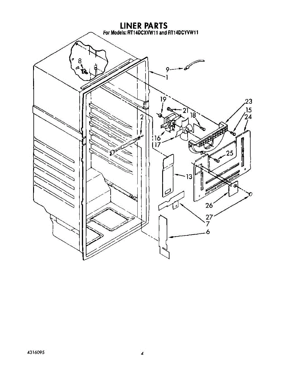 Parts for Whirlpool RT14DCYVG11: 03 - Liner Parts