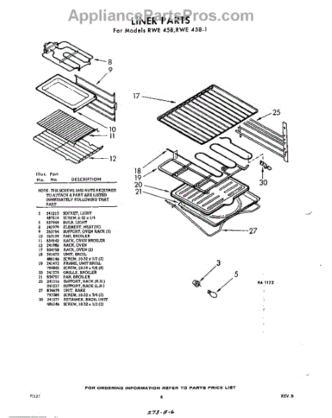 Parts for Whirlpool RWE458: 06 - Liner Parts