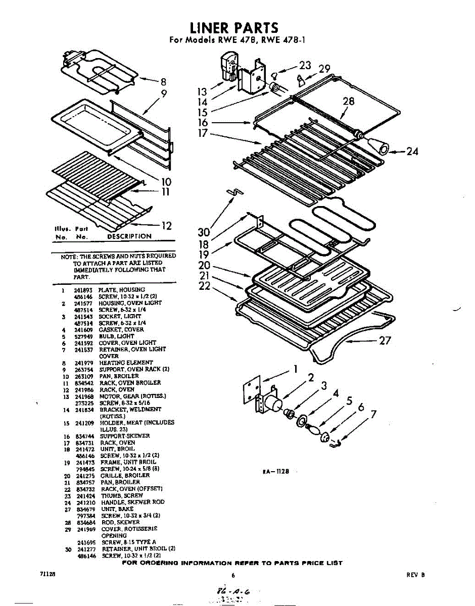 Parts for Whirlpool RWE478: 06 - Liner Parts