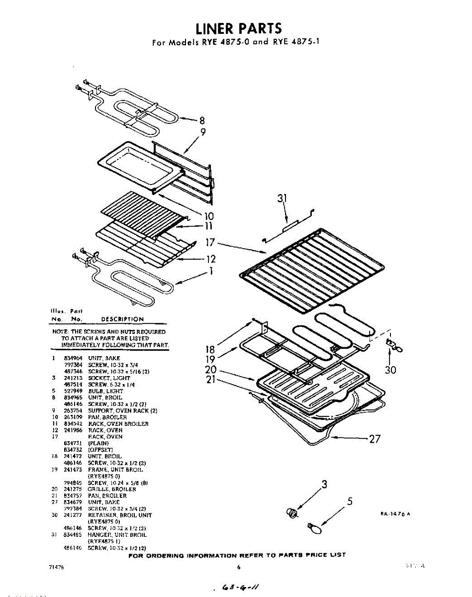 Parts for Whirlpool RYE48750: 06 - Liner Parts
