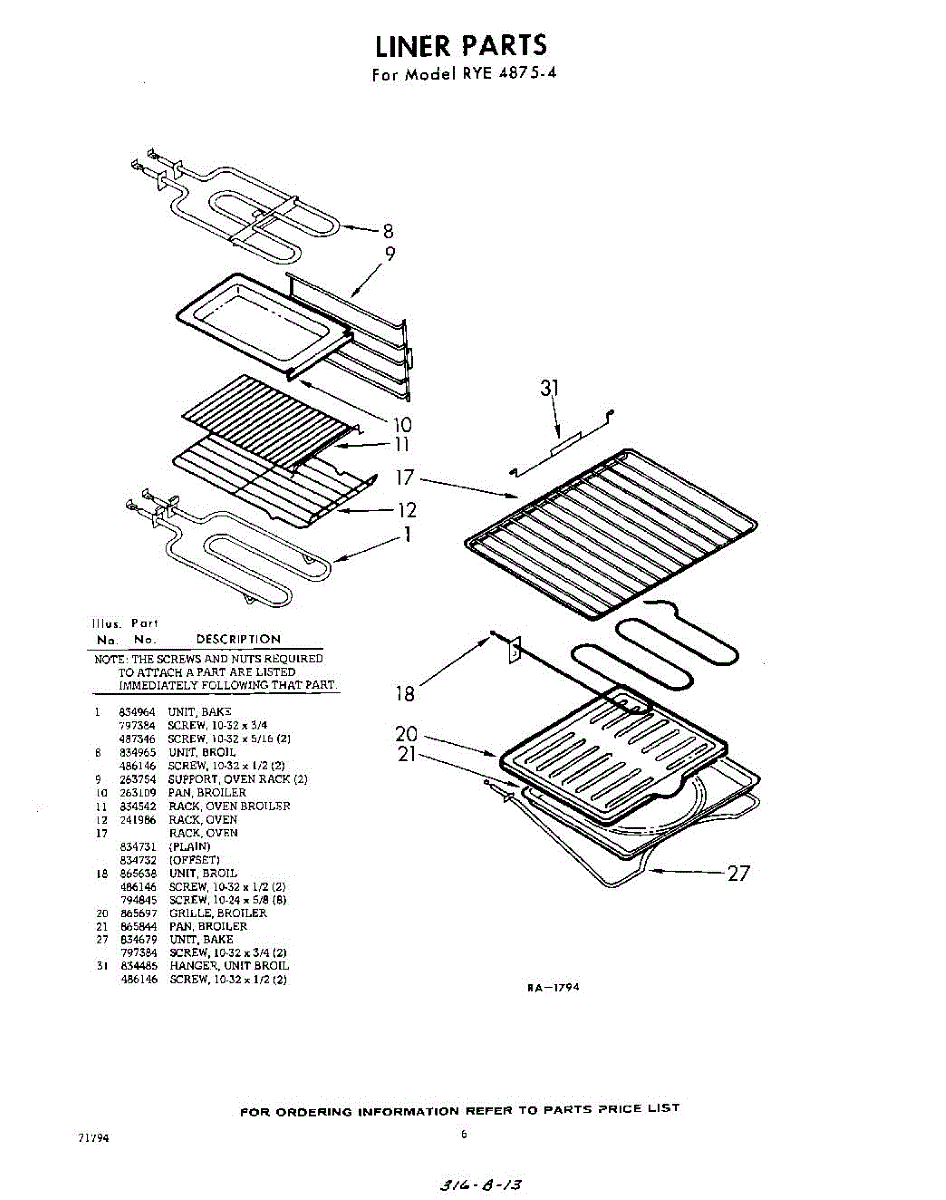 Parts for Whirlpool RYE48754: 06 - Liner Parts