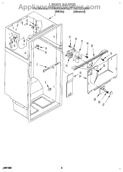 Parts for Whirlpool TT18CKXAN00: 02 - Liner Parts