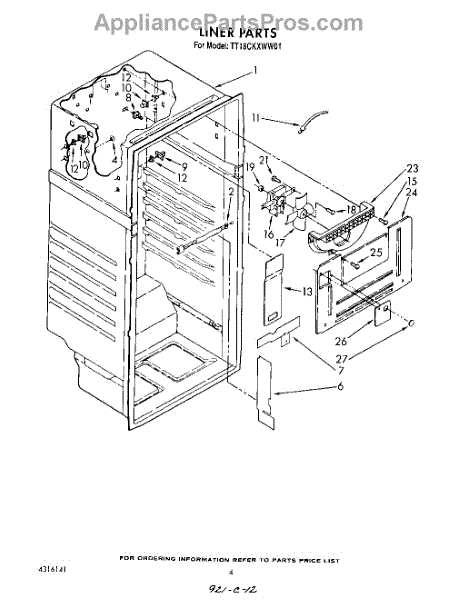 Parts for Whirlpool TT18CKXWN01: 03 - Liner Parts