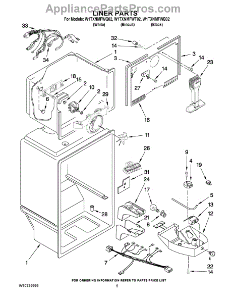 Parts for Whirlpool W1TXNMFWT02: 03 - Liner Parts