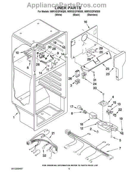 Parts for Whirlpool W8RXEGFWB00: 03 - Liner Parts