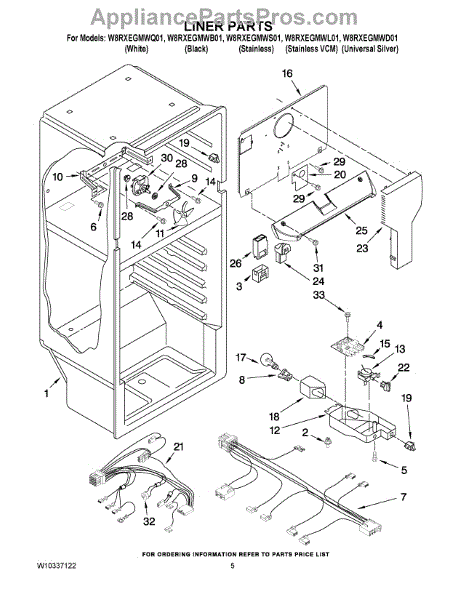 Parts for Whirlpool W8RXEGMWQ01: 03 - Liner Parts