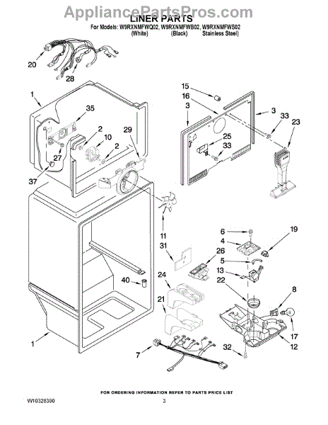Parts for Whirlpool W9RXNMFWS02: 02 - Liner Parts