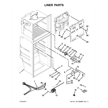 The wire harness plays an important role in powering functions like LED lighting, ice makers, door alarms, and temperature control boards behind interior shelves. It acts as the circulatory system that energizes systems.