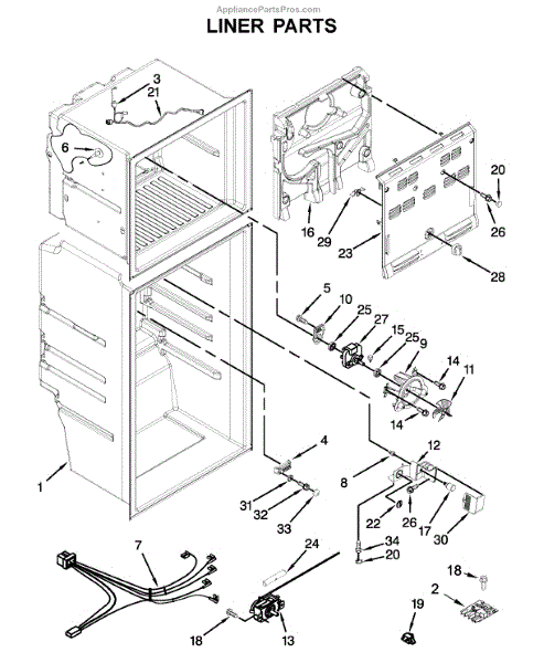The wire harness plays an important role in powering functions like LED lighting, ice makers, door alarms, and temperature control boards behind interior shelves. It acts as the circulatory system that energizes systems.
