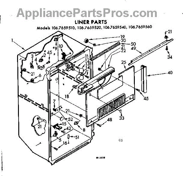 Parts for Kenmore 106.7659520 (1067659520, 106 7659520): Liner Parts
