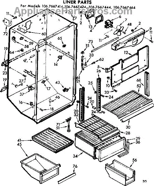 Parts for Kenmore 106.7667444 (1067667444, 106 7667444): Liner Parts