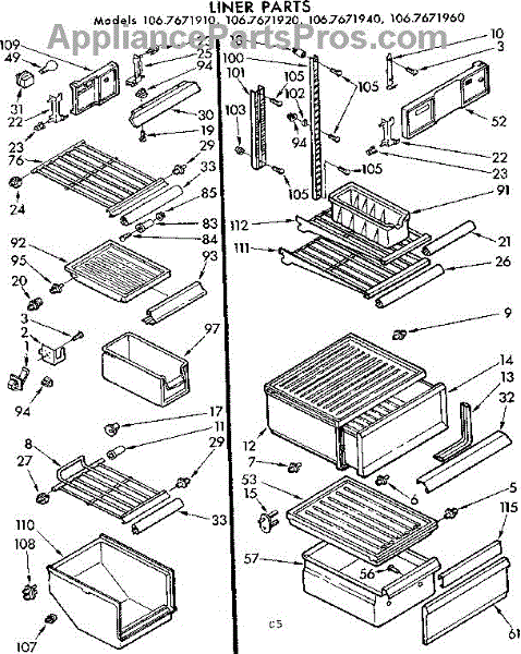 Parts for Kenmore 106.7671960 (1067671960, 106 7671960): Liner Parts