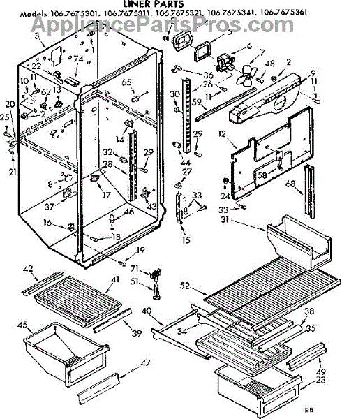 Parts for Kenmore 106.7675341 (1067675341, 106 7675341): Liner Parts