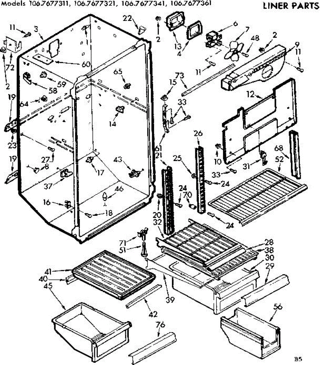 Parts for Kenmore 106.7677361 (1067677361, 106 7677361): Liner Parts