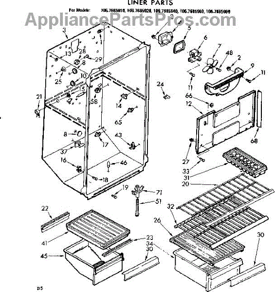 Parts for Kenmore 106.7685940 (1067685940, 106 7685940): Liner Parts