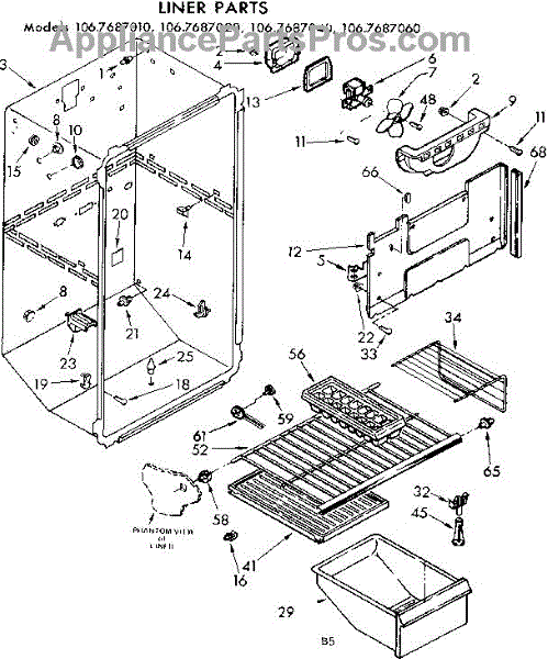 Parts for Kenmore 106.7687010 (1067687010, 106 7687010): Liner Parts